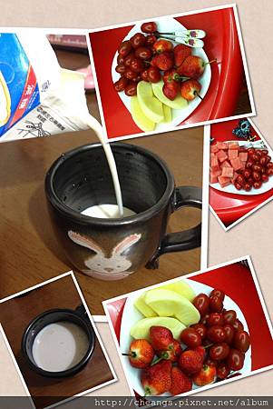 誰說豆漿一定要配油條,XD 搭配好吃的水果,也有一種輕食風喔~~