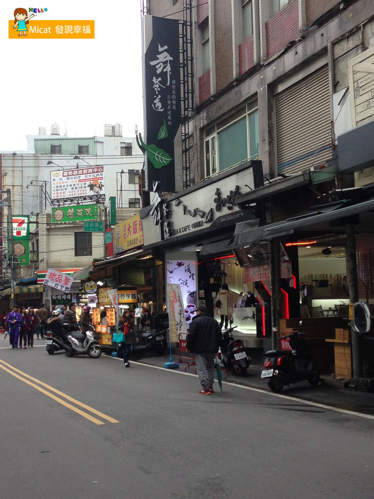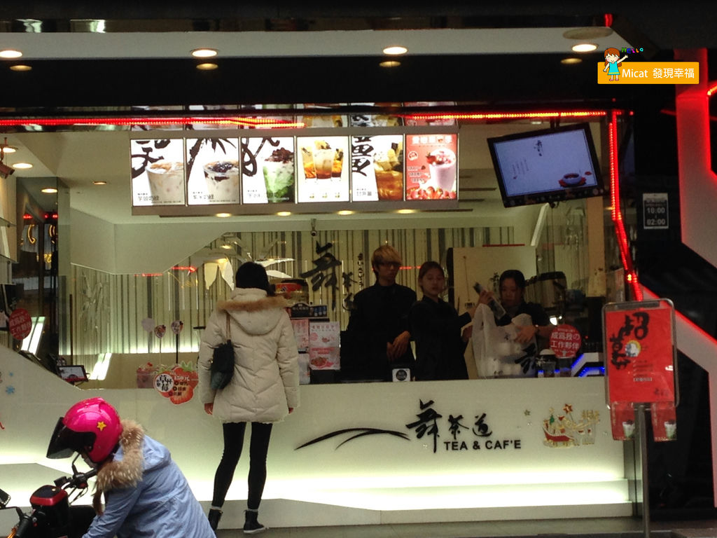 往前走了不久,就看見以前喝過的「舞茶道」,花花眼尖,一眼就看見「舞茶道」旁有兩個座位區,於是我們二話不說便決定快步衝過去,決定點